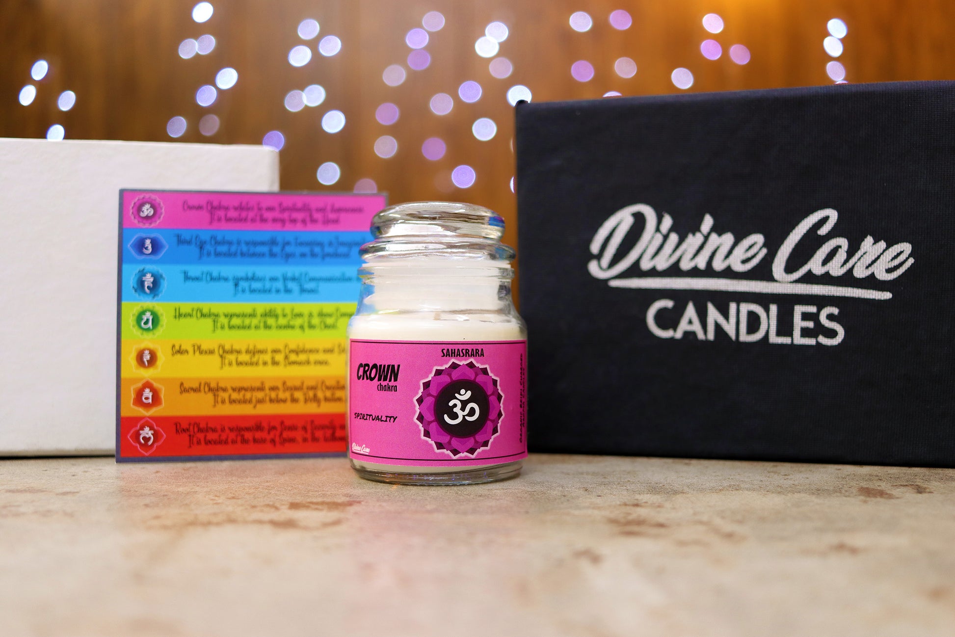 - 7 Reiki Charged Aroma Candles (each 100gm) — one for every chakra: Crown Chakra (Sahasrara), Third Eye Chakra (Ajna), Throat Chakra (Vishuddha), Heart Chakra (Anahata), Solar Plexus Chakra (Manipura), Sacral Chakra (Swadhisthana), Root Chakra (Muladhara)